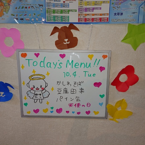 おはようございます😊 未分類 2022.10.04 本日は、雨☔ですね・・・ 雨にも負けずぅーっ❕❕ 傘に🤭🤭可愛いのが(≧◇≦) そして本日の😇昼食のメニューです😋 本日も1日、よろしくお願いします(#^.^#)