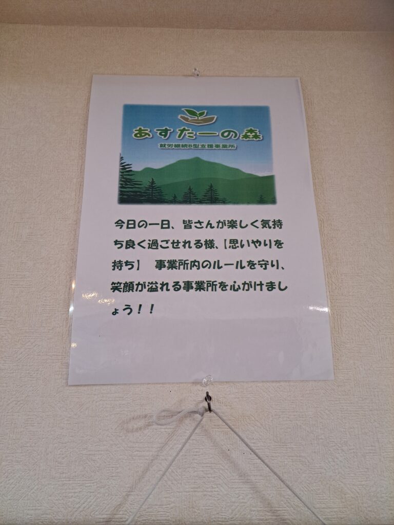 多数の方が通所されてますので、皆さんが優しい心を持ち、お互いの事を思いやれる心
