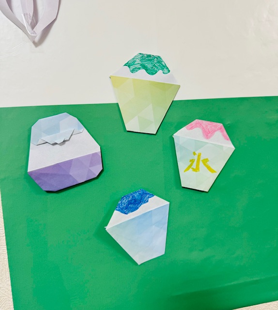 かき氷・・・の季節ですね 未分類 2024.06.272024.06.26 お疲れ様でした(^^♪ 今日は午前中は肌寒かったんですけどね、午後から暑くなりましたね。 これから、食べたくなる季節になりますね。 ある利用者様の作品で、折り紙でかき氷🍧を作ってきてくれました。 作業場に飾りましたよ!(^^)!