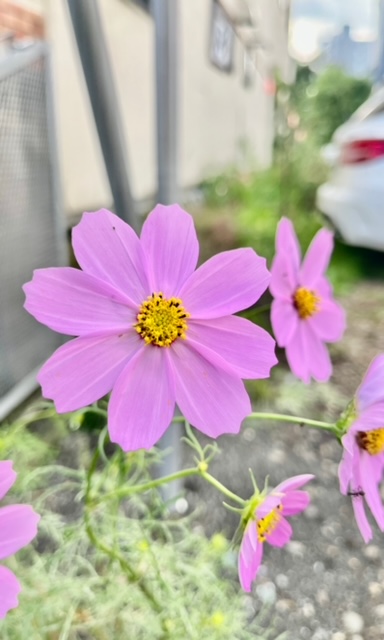 先日、ご利用者様の送迎前に可愛いコスモスが咲いていました❕