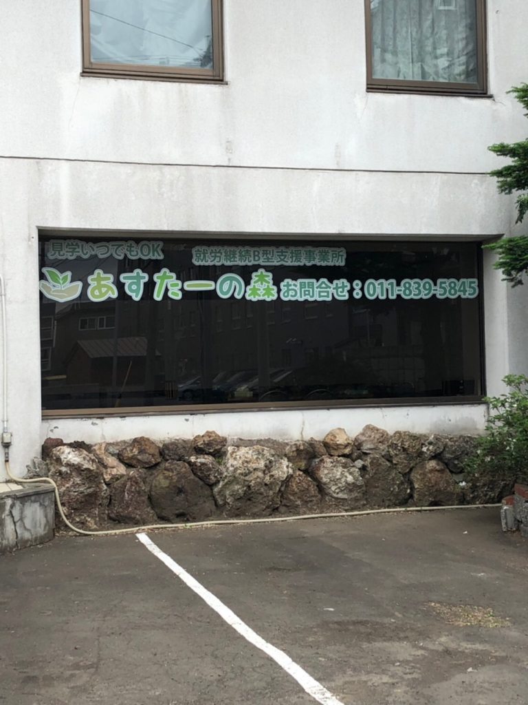 あすたーの森には大きな窓があるのですが、その窓に通行する方からも良く見えるカッティングシートを貼りました!