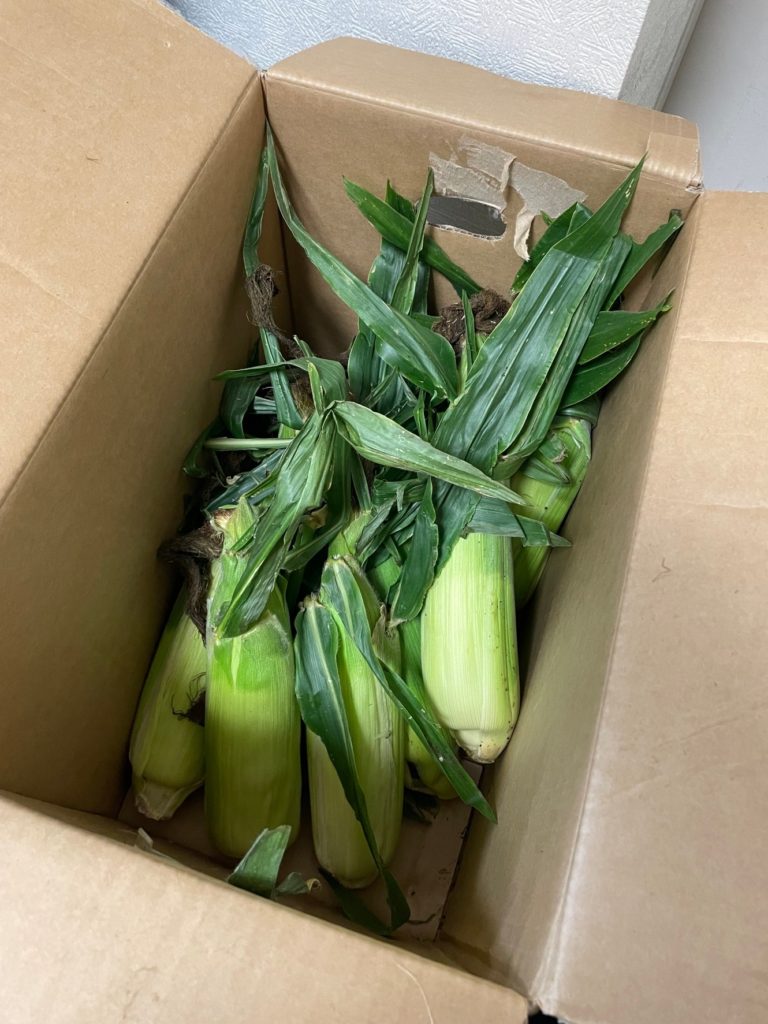 今日は知り合いからとうもろこしをいただきましたよ。