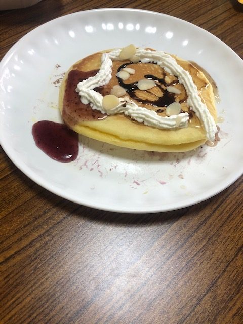 写真は利用者さんのお皿をパチリ。ホイップクリームにブルーベリーソース、
