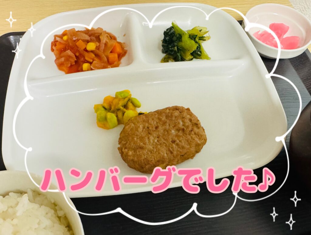 さて、今日のお昼ご飯はみんな大好きハンバーグでした。