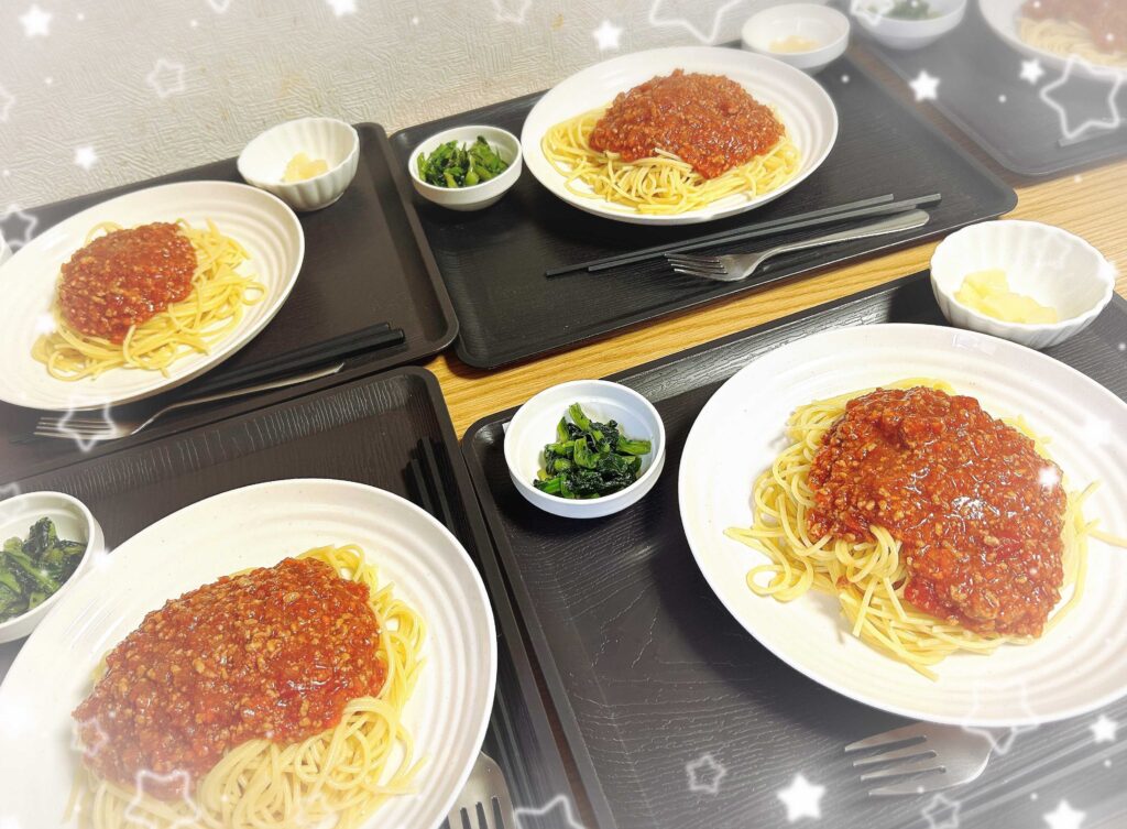 さて、今日のお昼ご飯はみんな大好き、ミートスパゲティーでした。