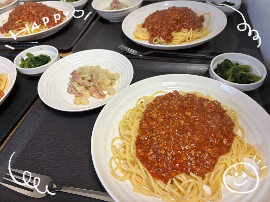 今日はミートスパゲティ♡ 未分類 2025.12.16 皆さんこんにちは~(^_^)/ 昨日の雪で道がぐちゃぐちゃですね💦 重たい雪で除雪も大変!足や腰など痛めないよう気を付けましょうね! 今日のお昼はとっても美味しそうなミートスパゲティ♡ みなさん、完食されていました。