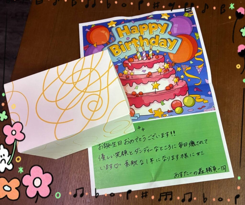 今月お誕生日を迎えられた利用者さまが3人いらっしゃり、ささやかではありますが