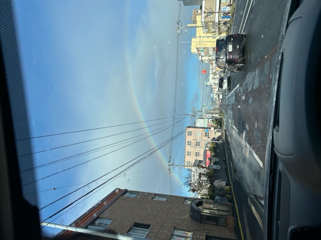 今朝、通勤途中でスタッフが綺麗な虹を発見しました。