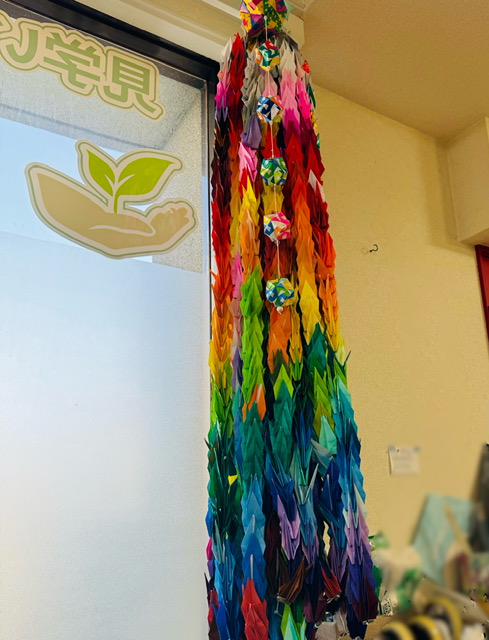 先月から利用者の皆さんでで作っていた千羽鶴が