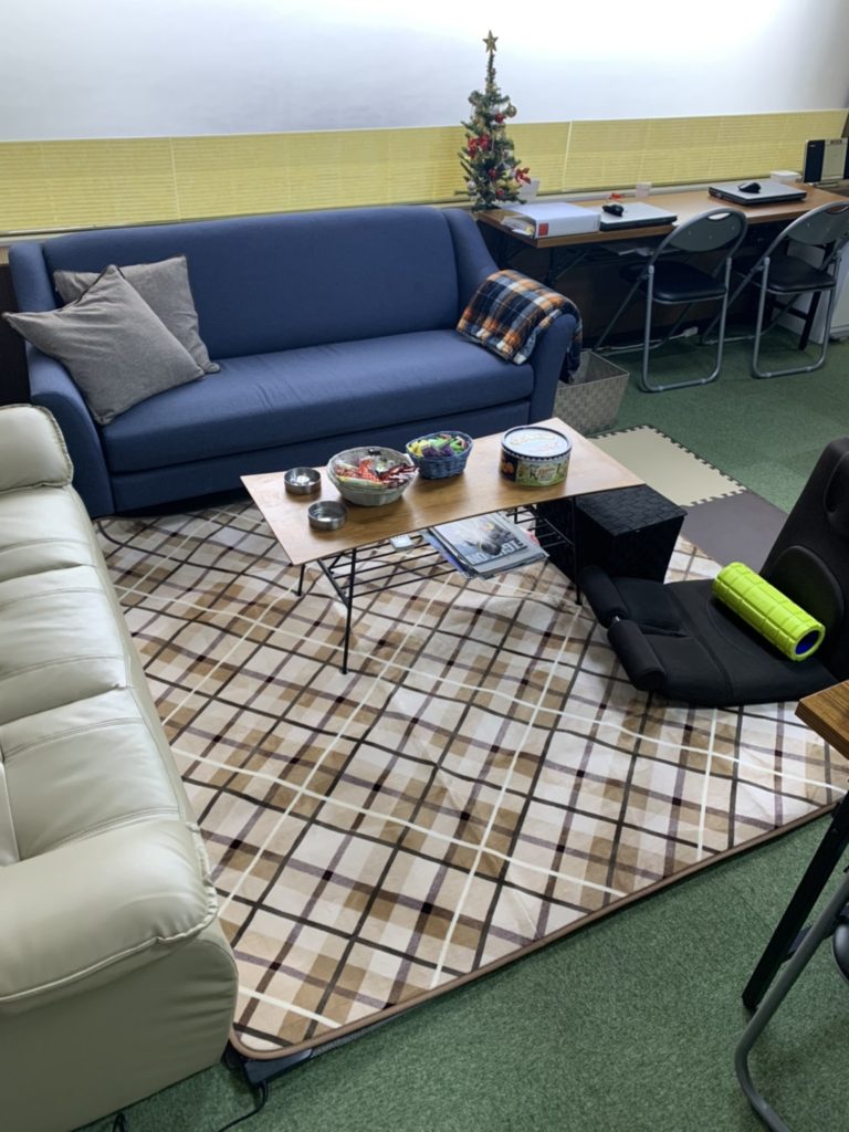 休憩スペースに電気カーペットを完備しました!