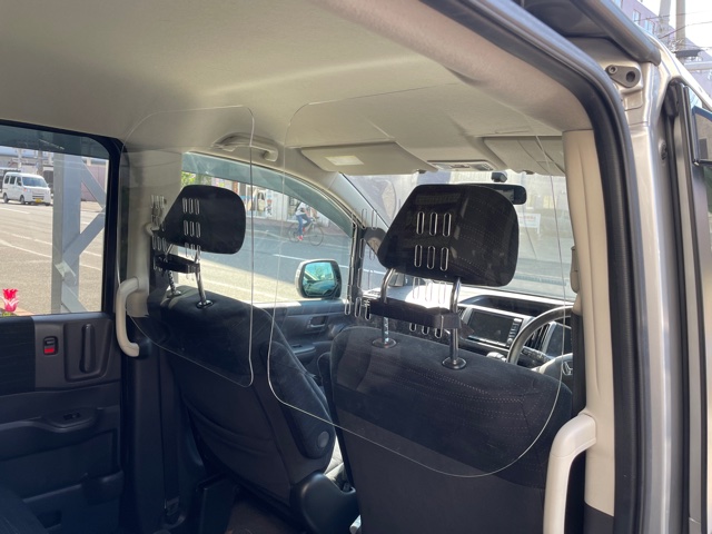 透明なので見づらいとは思いますが、車内用パーテーションを取り付けました。