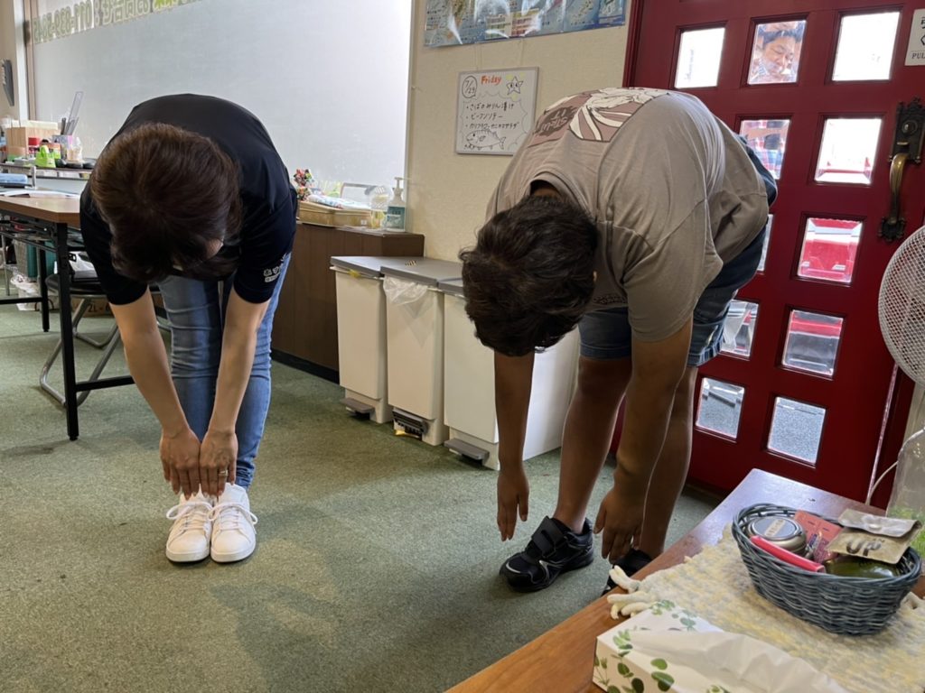 朝から、作業前にすっきり軽く屈伸しました!