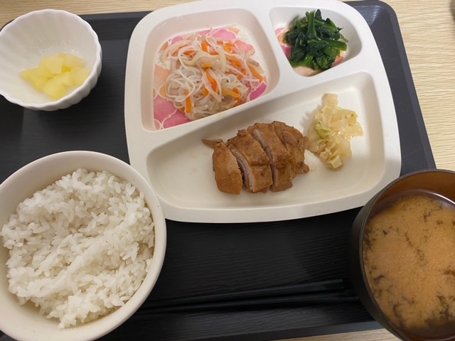 鶏肉のピリ辛味噌焼きがメインのお昼ご飯でした(^^♪