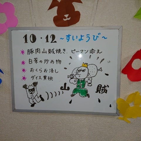 本日もお疲れ様です(≧◇≦) 未分類 2022.10.11 冷えてきましたね😣 皆さん、暖かくしてくださいね🍀 明日の昼食のメニューです😋 明日もあすたーの森、よろしくお願いします(#^^#) 凄い上手な絵です❢❢ ありがとうございます(≧◇≦)