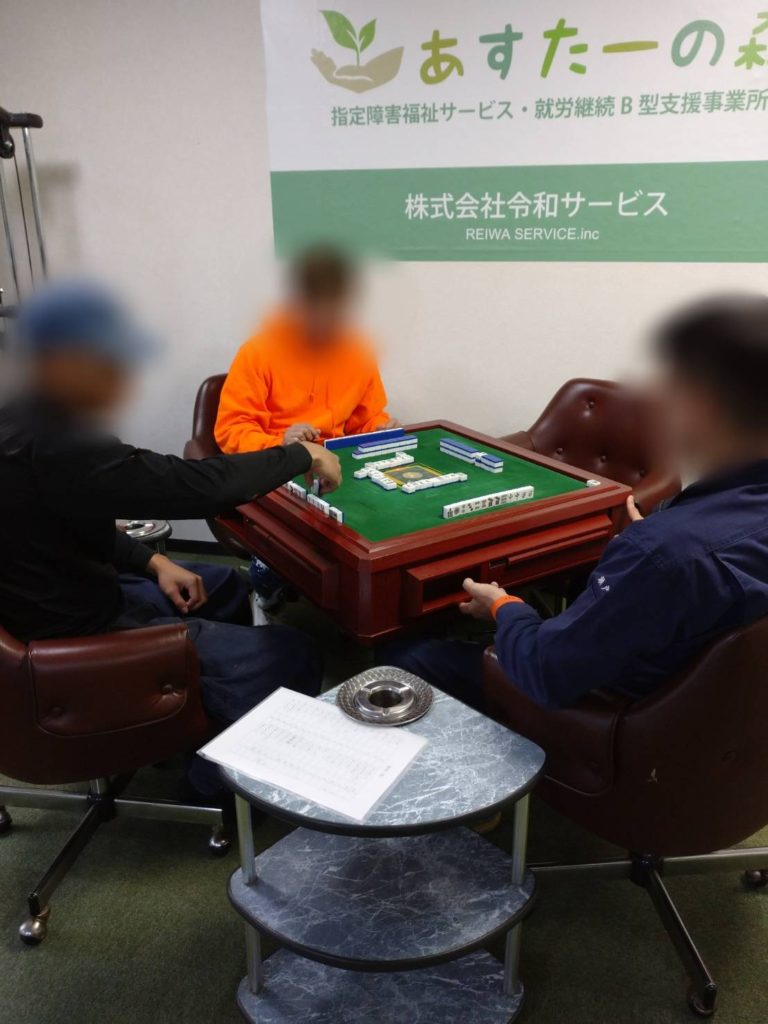 休憩時間には気分転換もかねて麻雀や筋トレをされる方もいます。