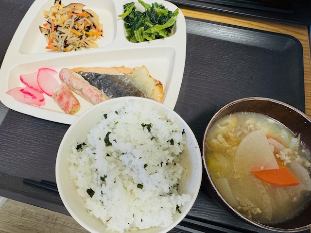 今日はお味噌汁の代わりにスタッフが豚汁を作ってくれました。