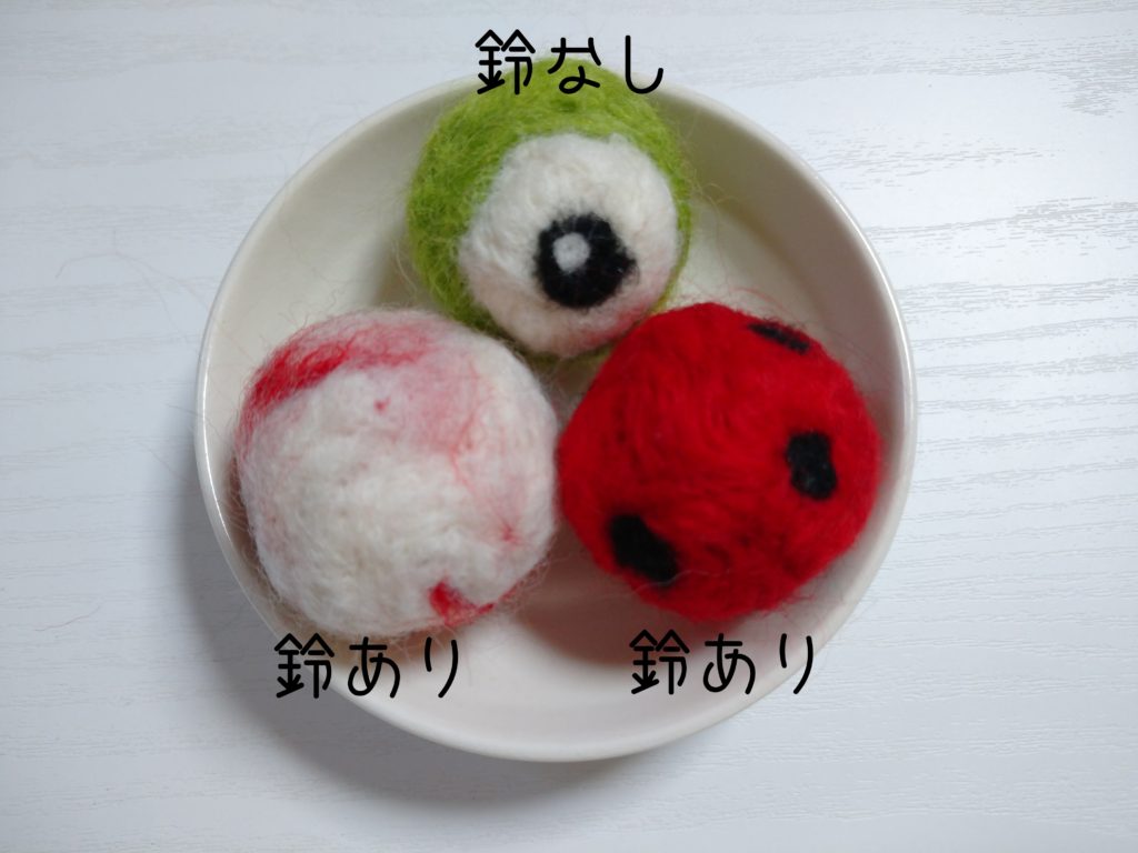 羊毛フェルトで中に鈴が入っているのと、入っていないのでコロコロ転がして猫ちゃんと遊べるその名も【タマニャン】是非気になる方はお試しください(^^)/