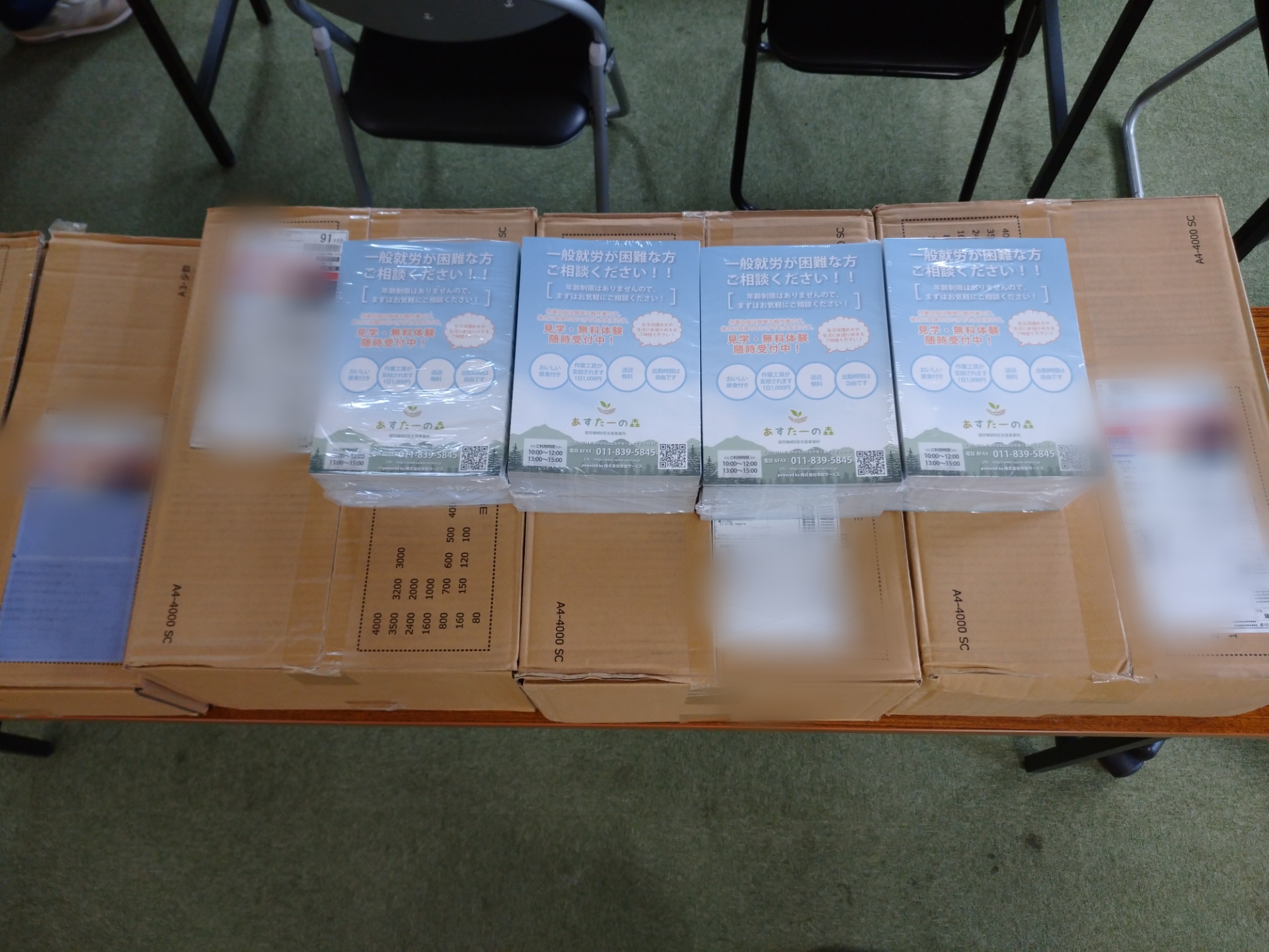 最近のあすたーの森は有難いことに利用者さんが沢山増えて一段と明るい事業所になってます。それもこれも写真の通りで、また、あすたーの森のチラシを30000枚追加注文(*^▽^*)