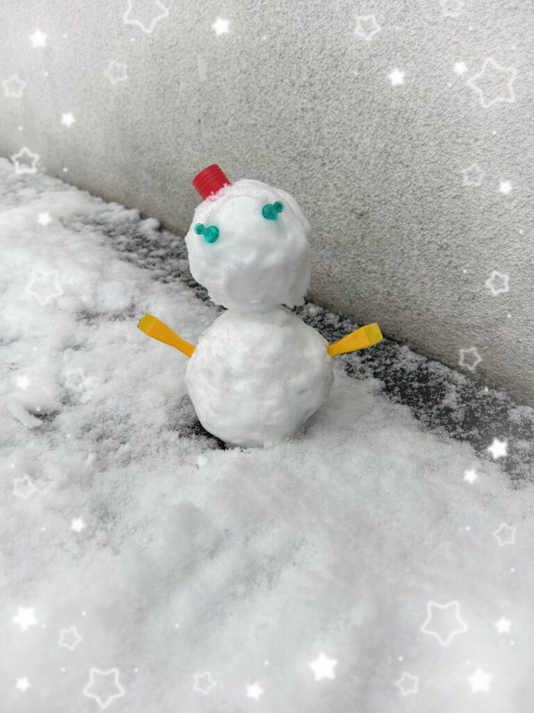 寒いのイヤだーと言いながら、スタッフで可愛い雪だるまを作りました。
