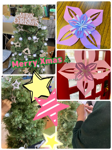今日は皆さんと一緒にクリスマスの装飾や飾り作りをしました(*’ω’*)